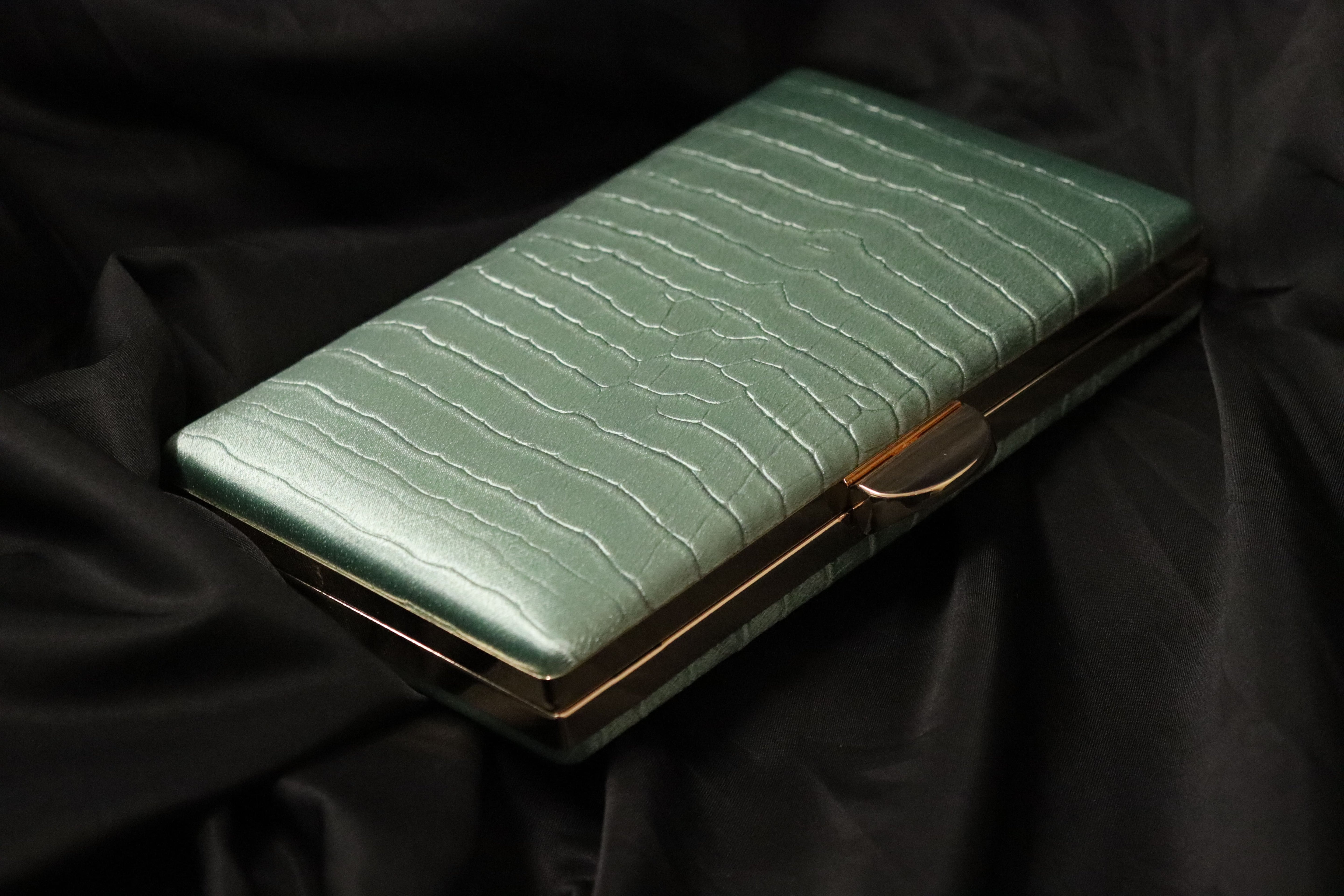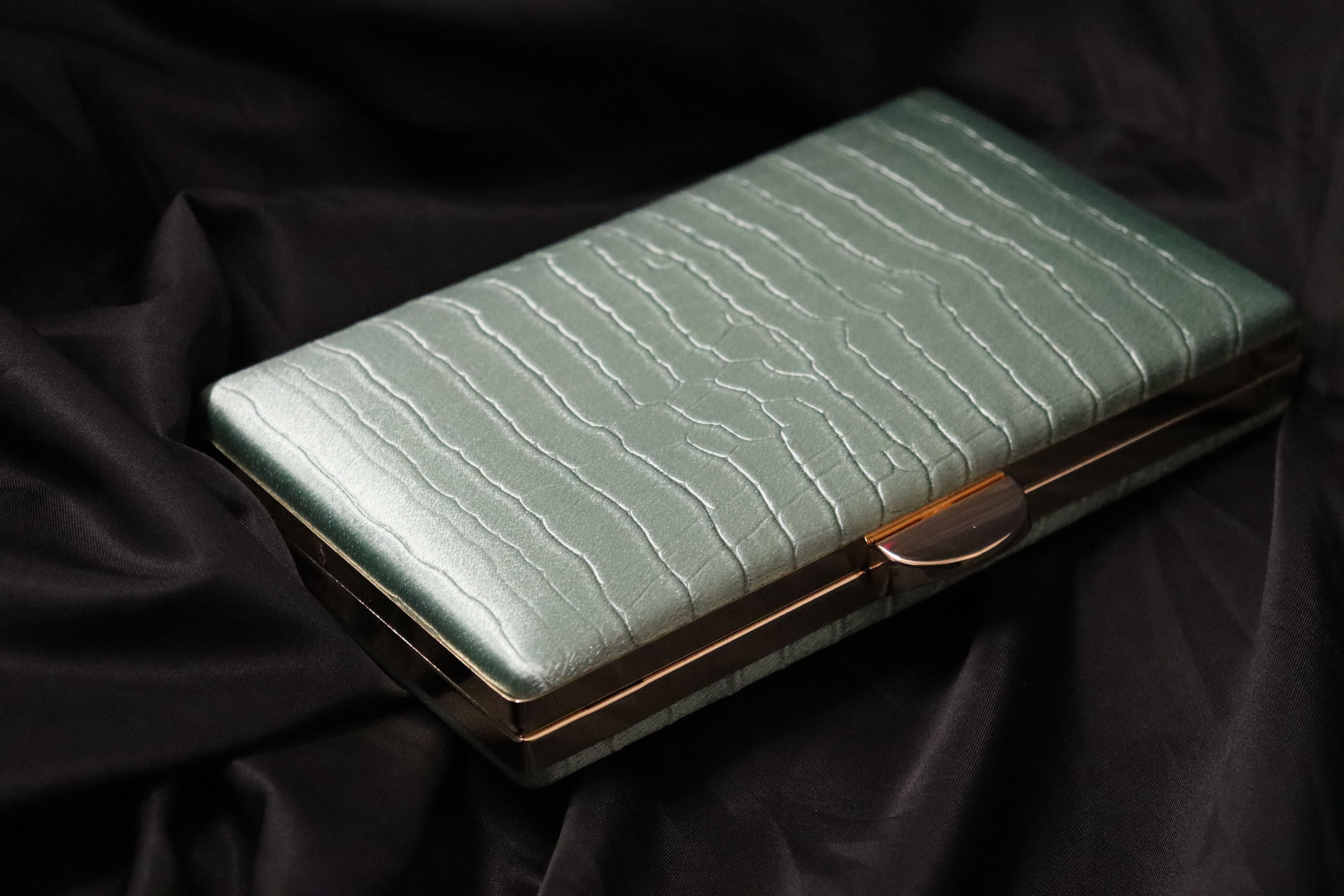 Clutch rígido rectangular en tono metalizado.
