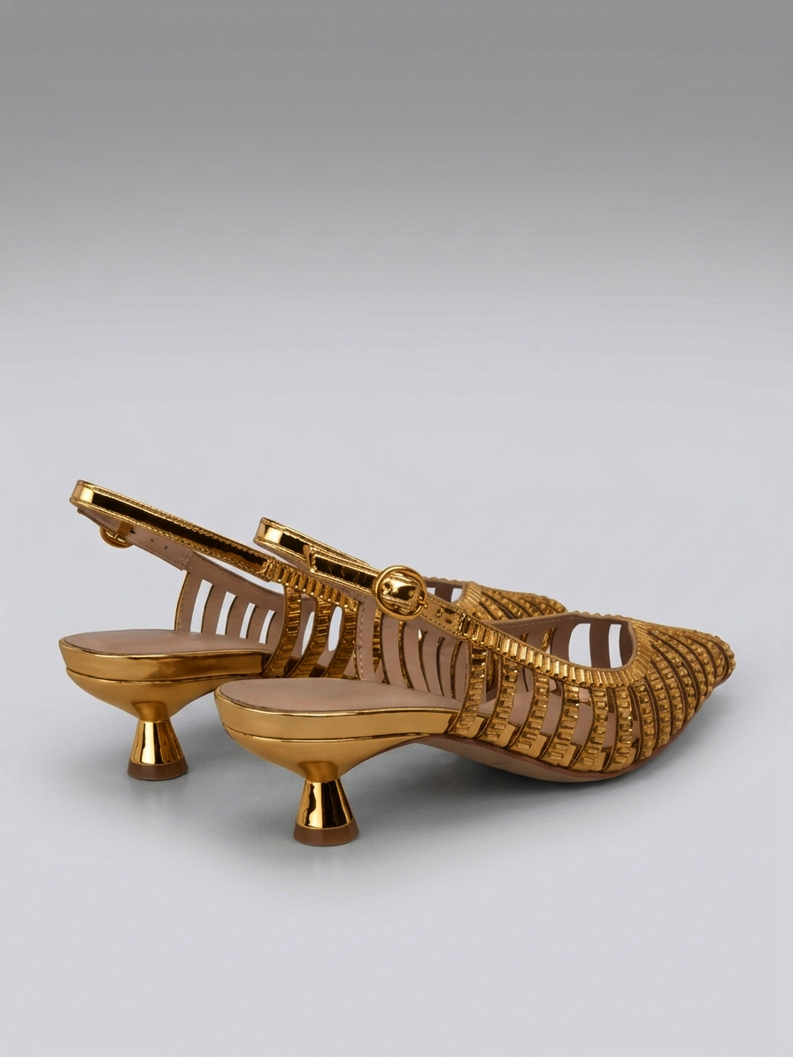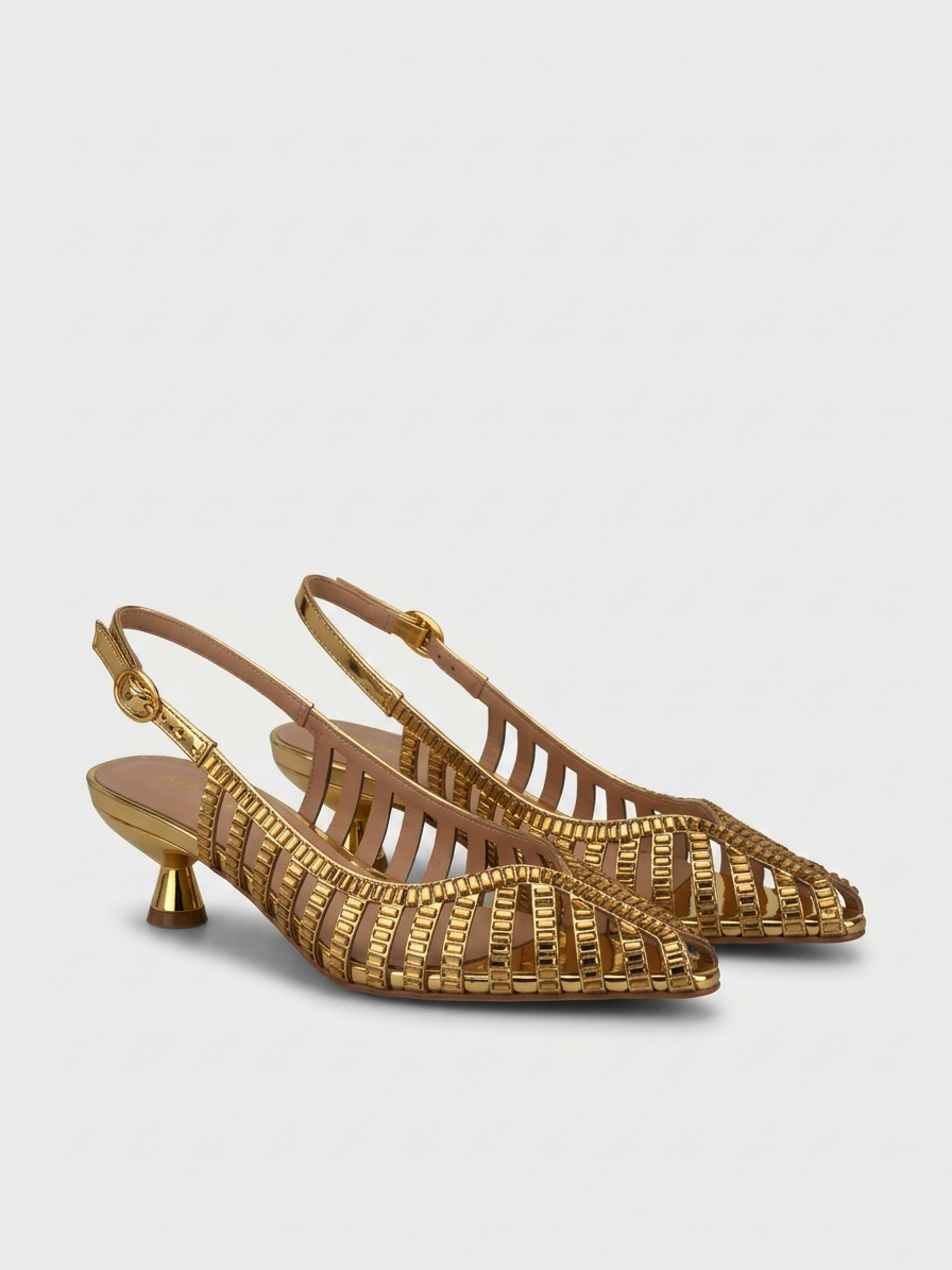 Tacones de Alma en Pena con tacón kitten metalizado.