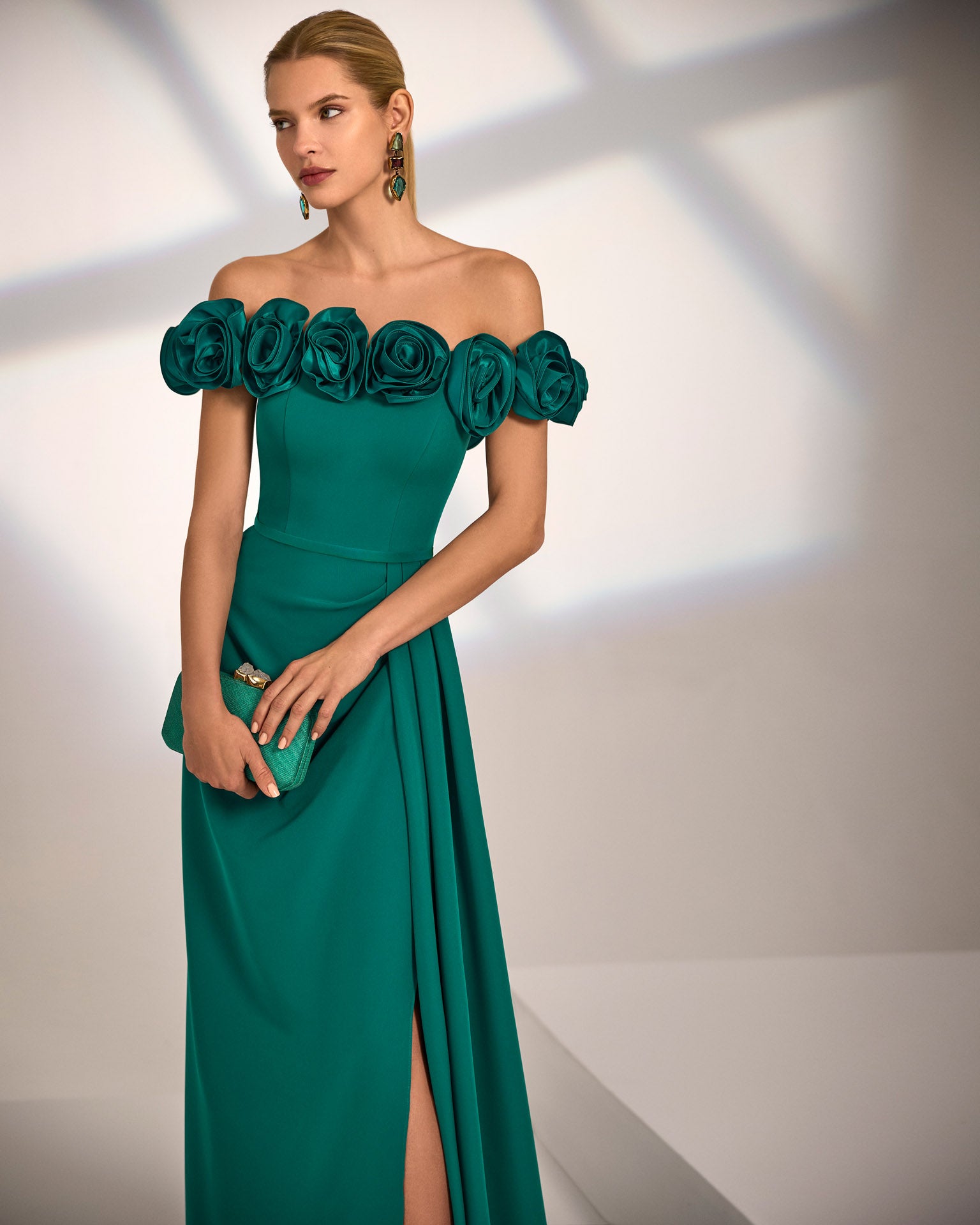 Vestido de fiesta largo confeccionado en crepe elástico.