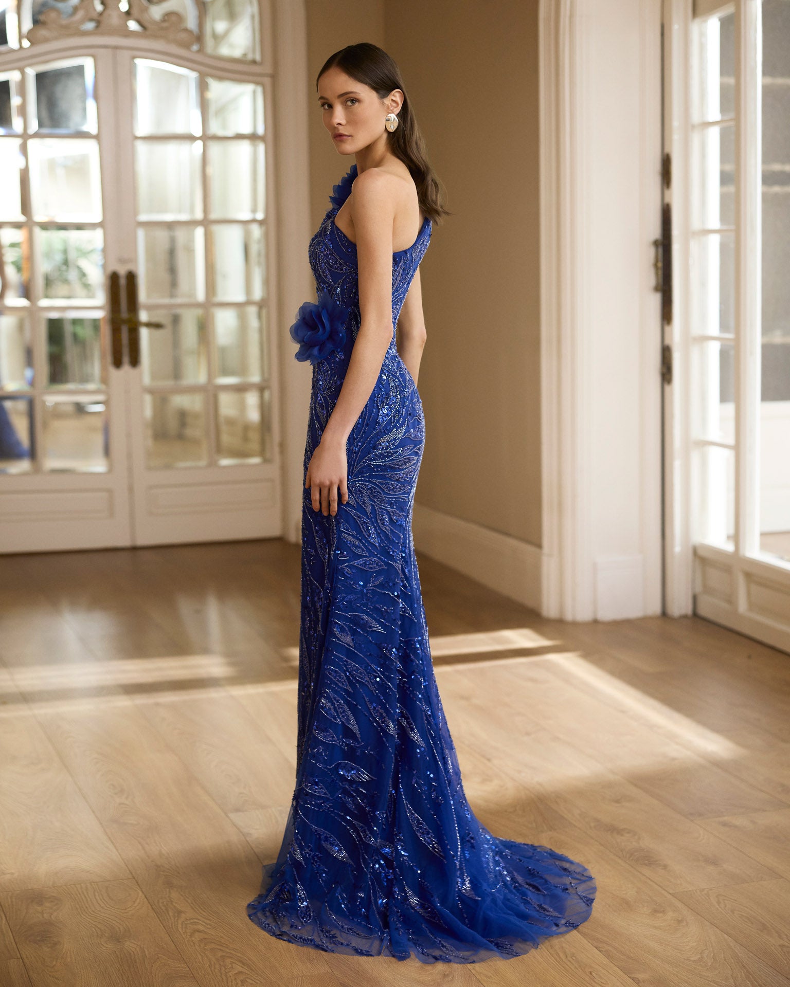 Vestido largo de lentejuelas.