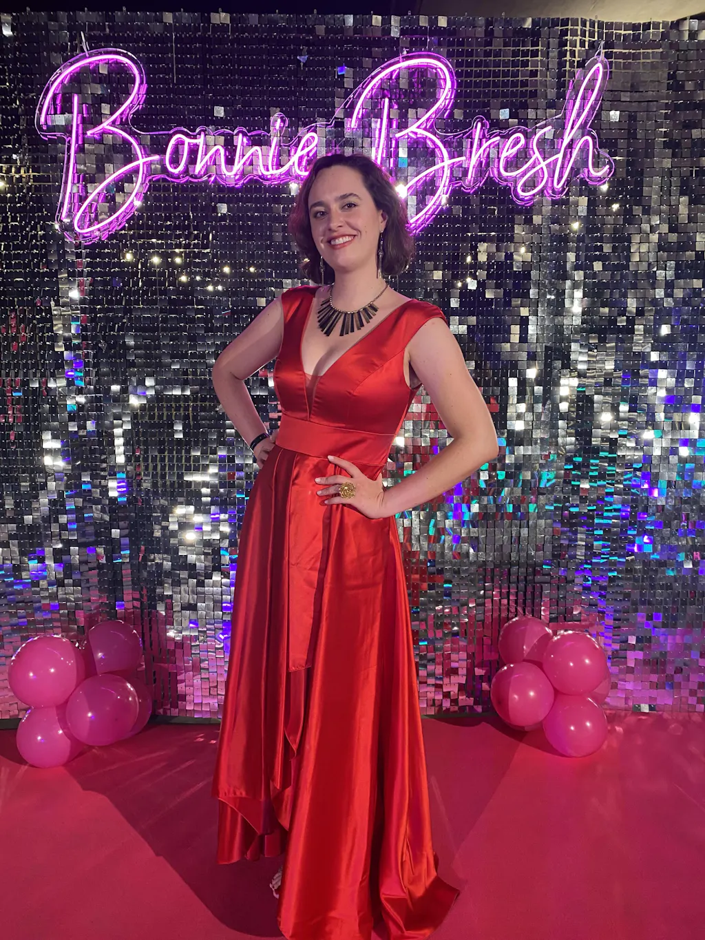 Mit V-Ausschnitt, geschlossenem Rücken und Trägern.