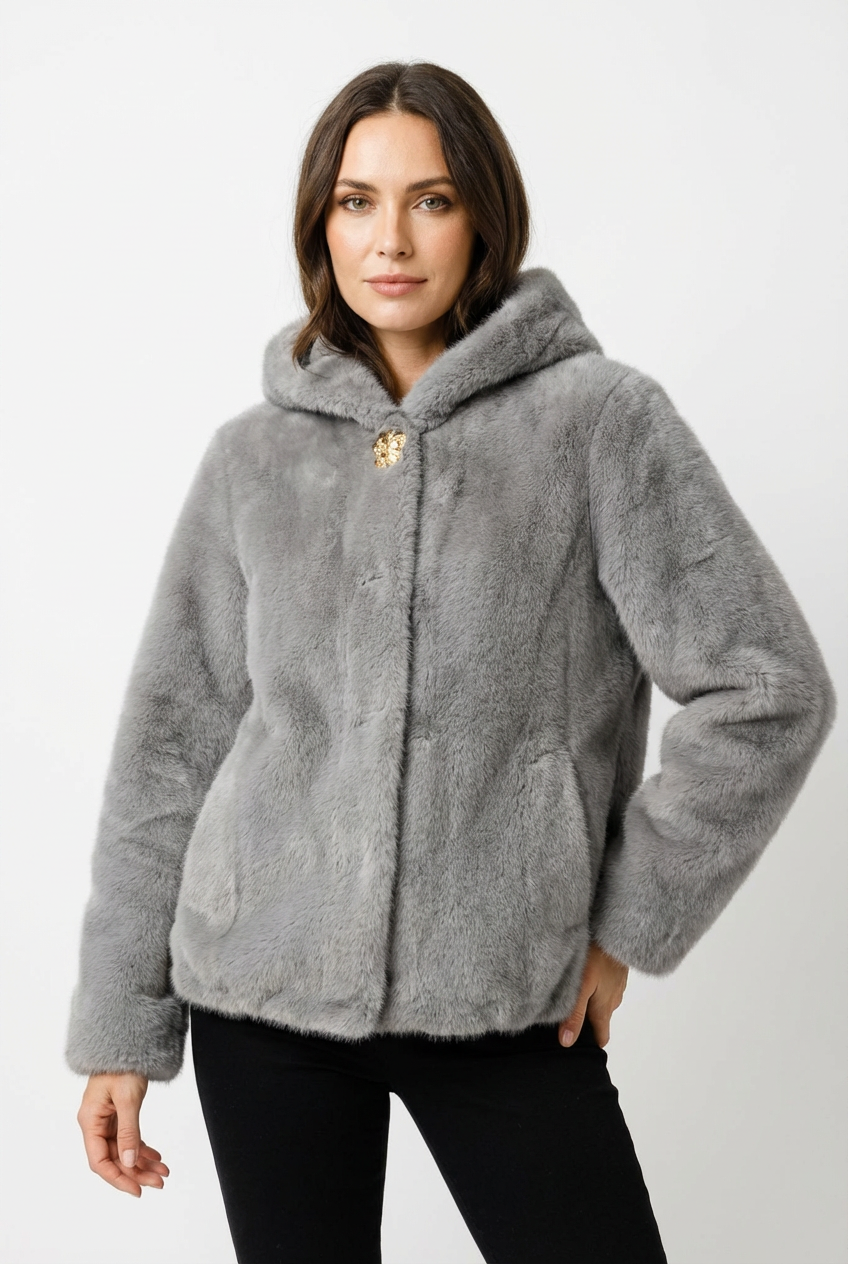 Abrigo confeccionado en piel sintética ultrasuave.