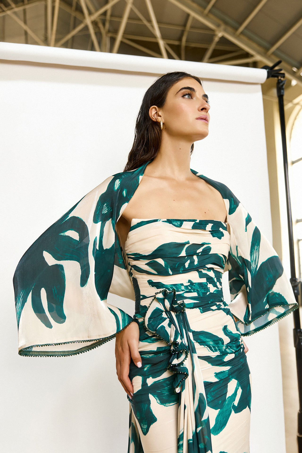 Bolero de fiesta confeccionado en gasa estampada.