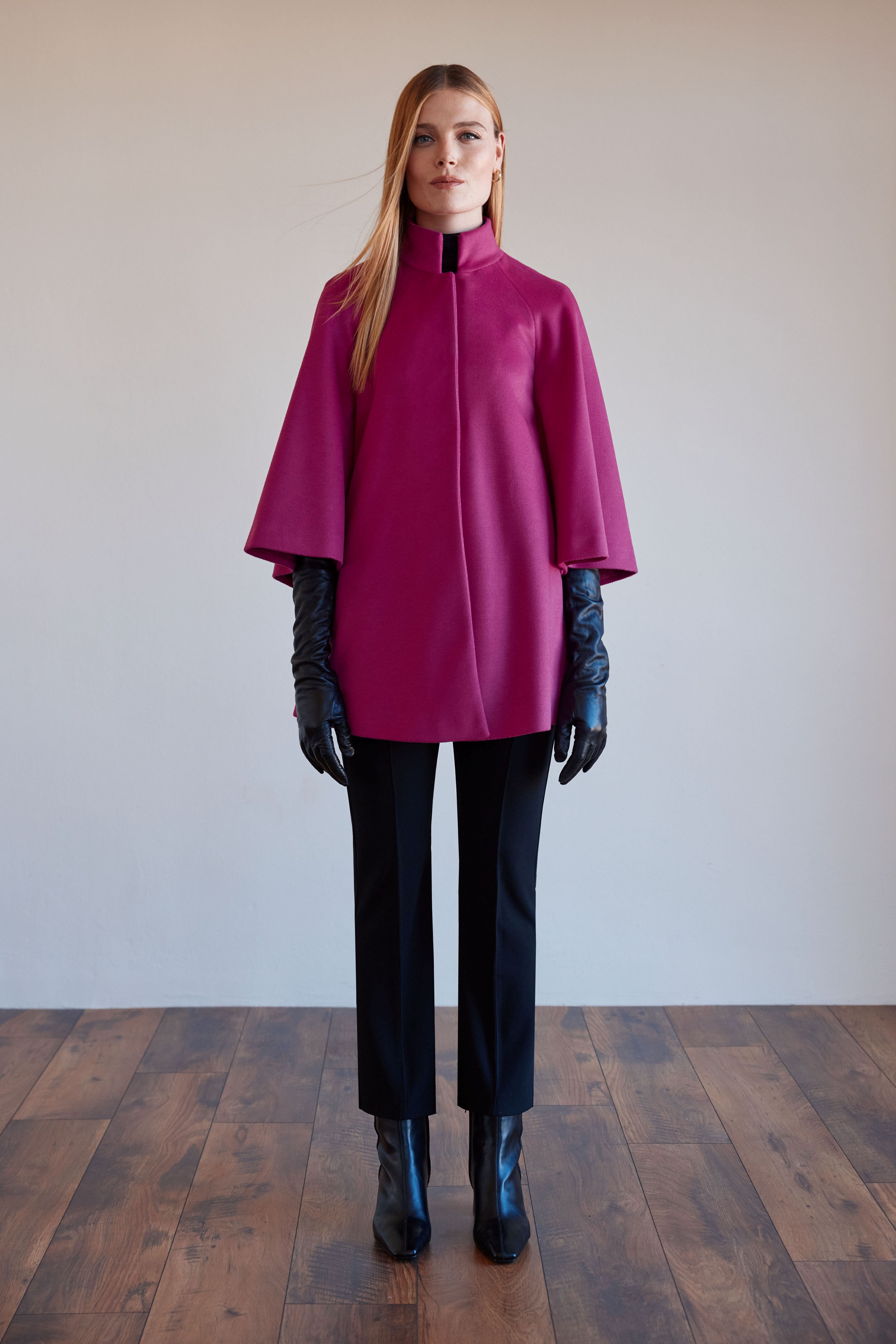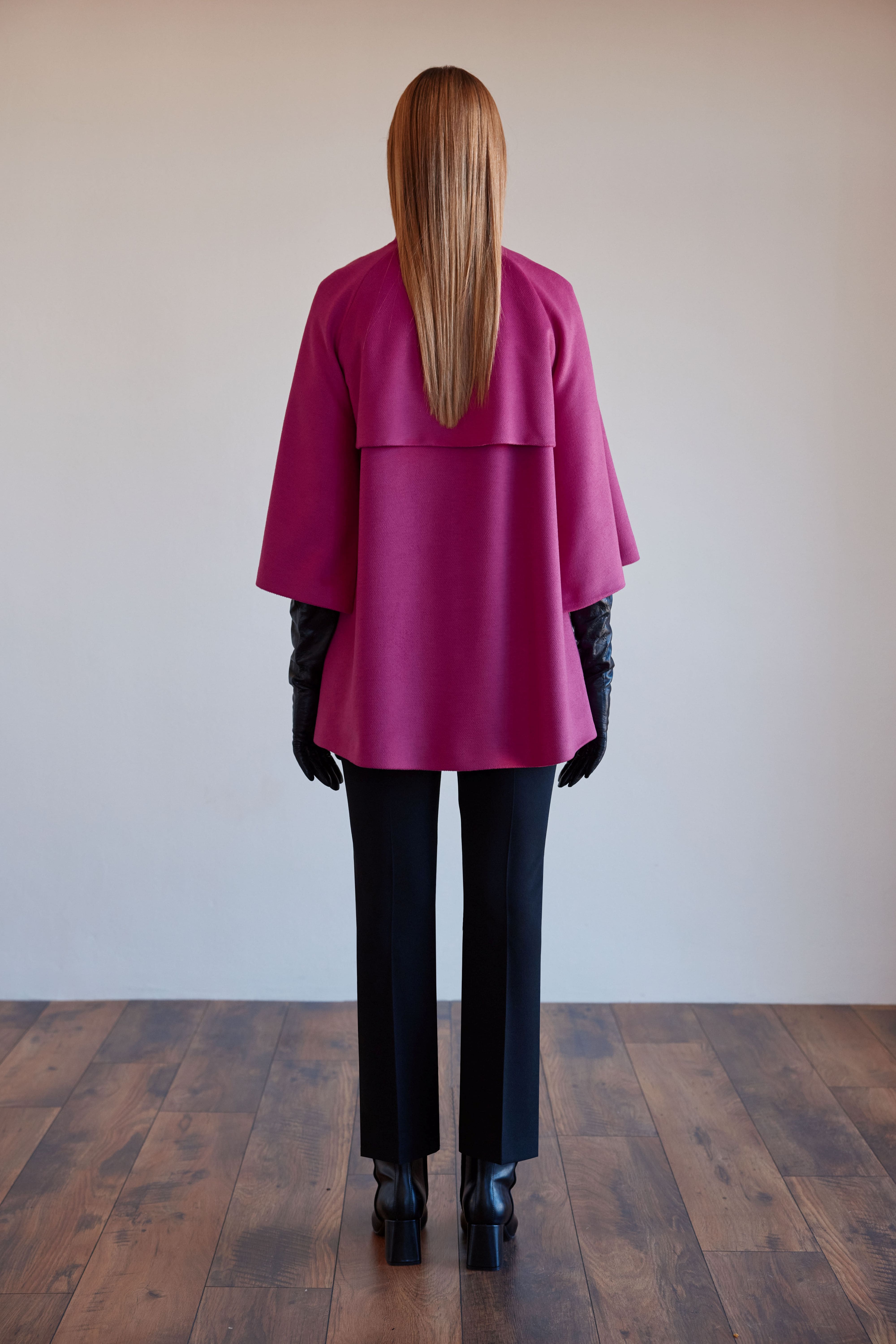 Arggido cape made from soft, structured fabric that drapes beautifully and moves naturally.