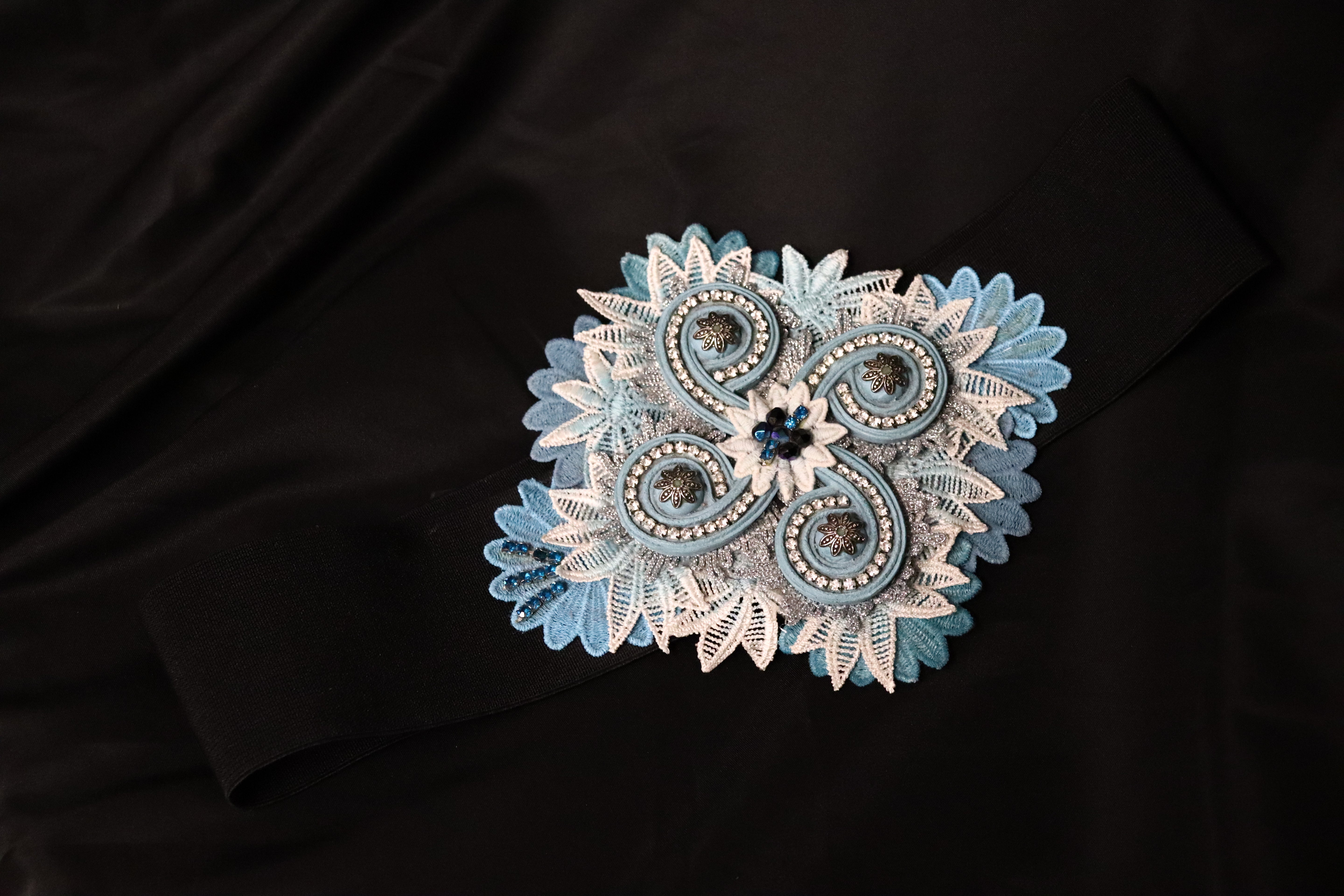 Cinturón elástico y detalles de pedrería.