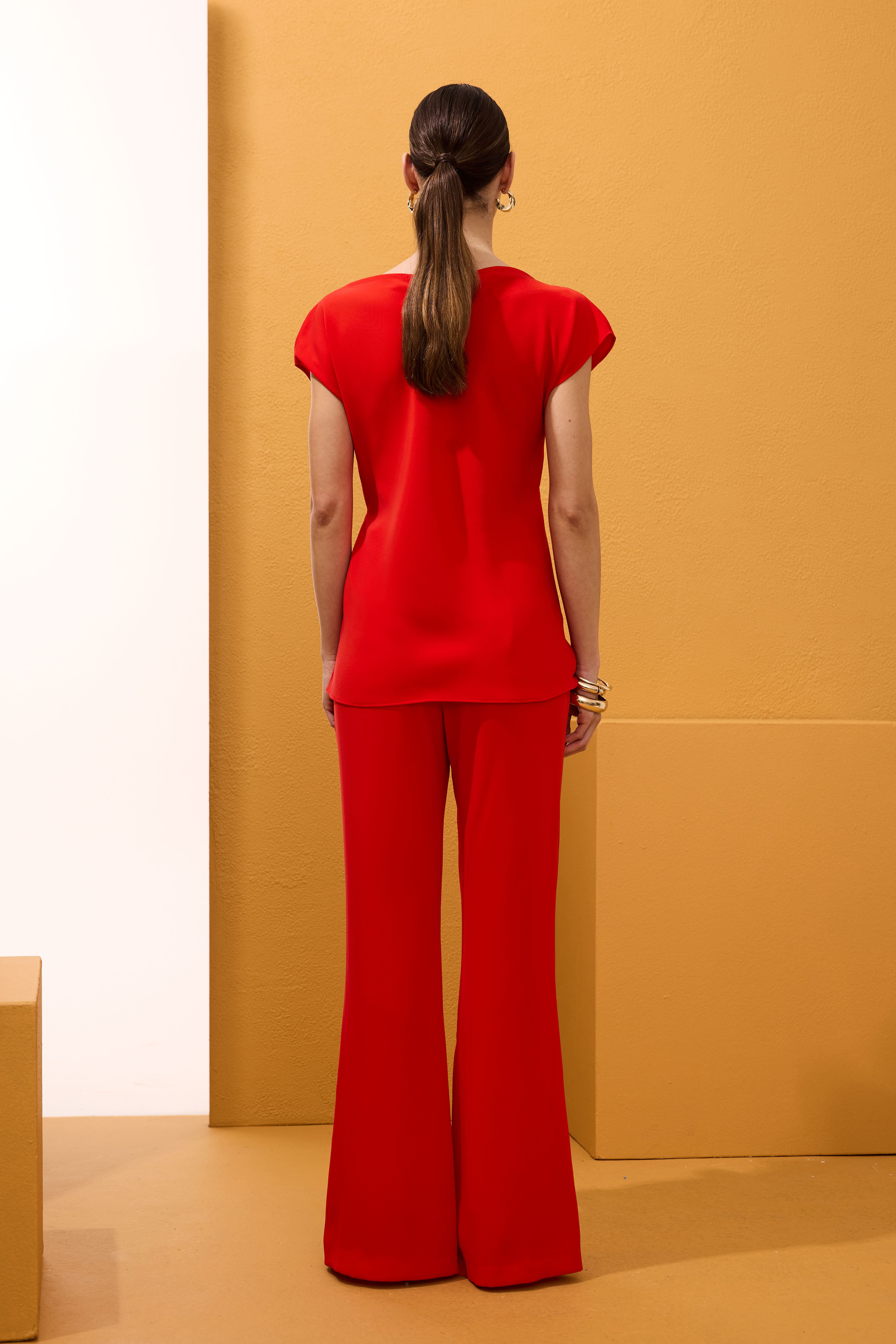 Blusa estilo túnica con elegante cuello barco y detalle de lazada lateral en la cintura, creando un drapeado muy favorecedor.