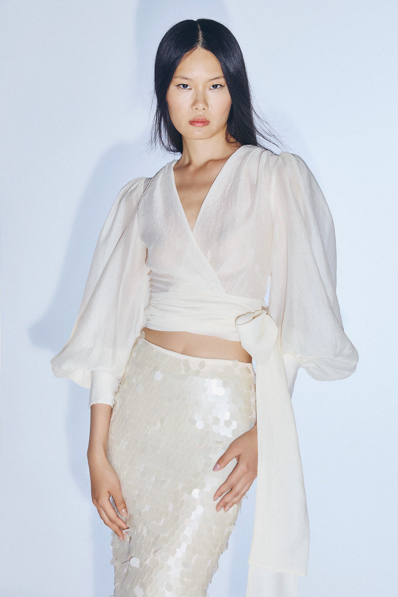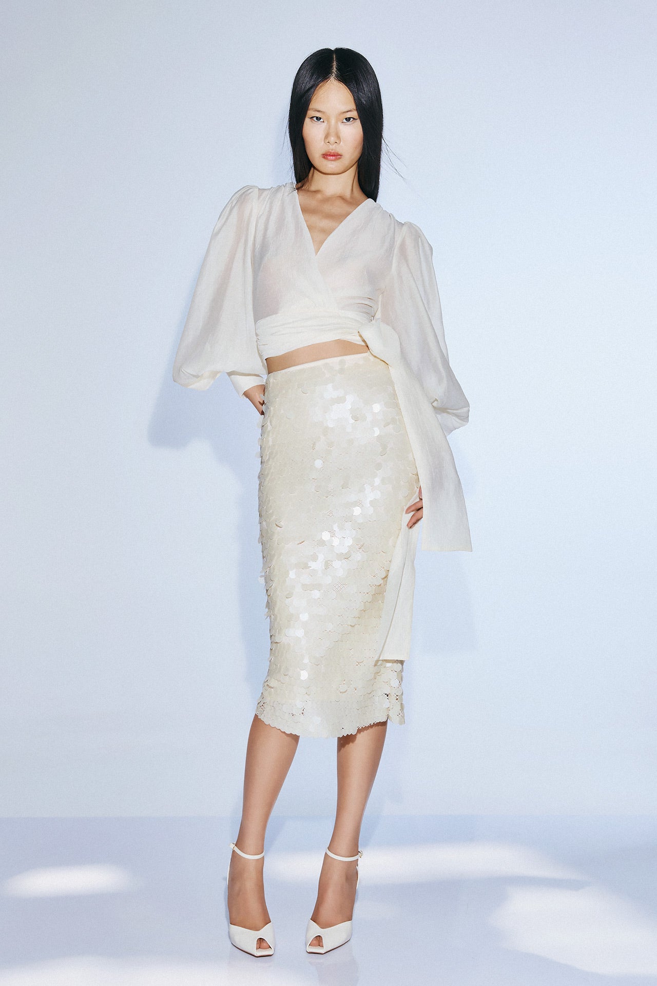 Falda midi de lentejuelas, forrada.