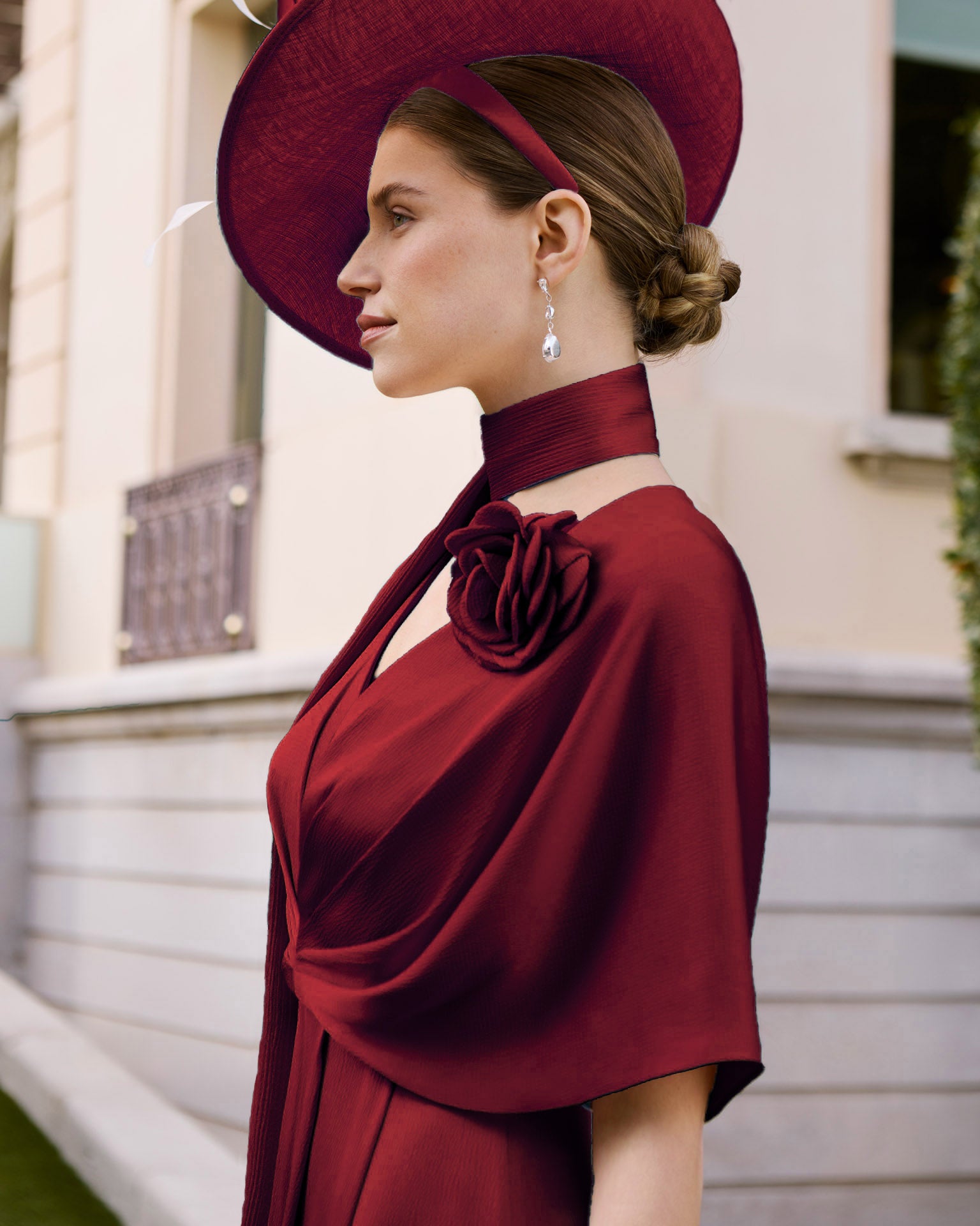 Vestido de fiesta largo confeccionado en raso texturizado.