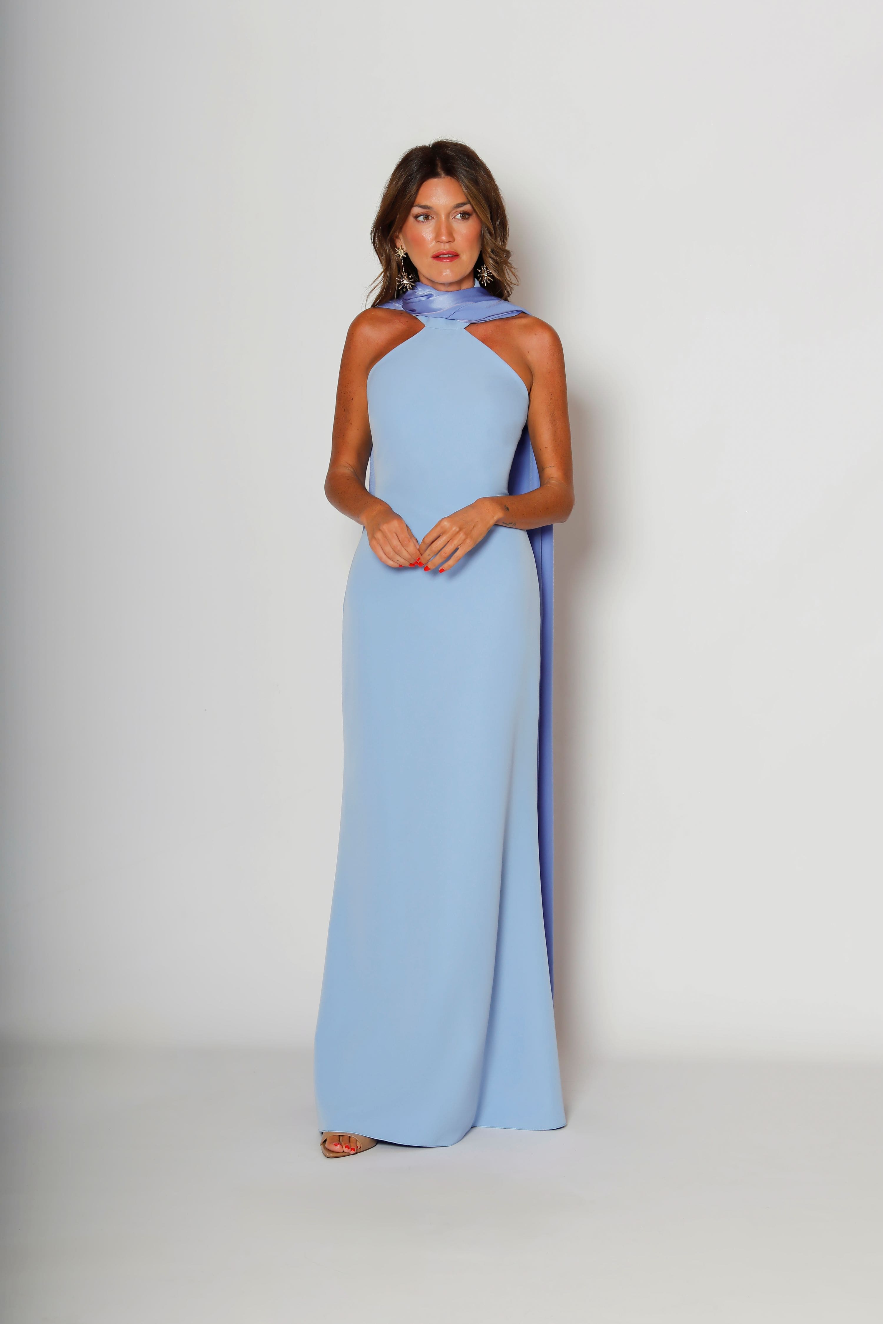 Long party dress made of crepe.