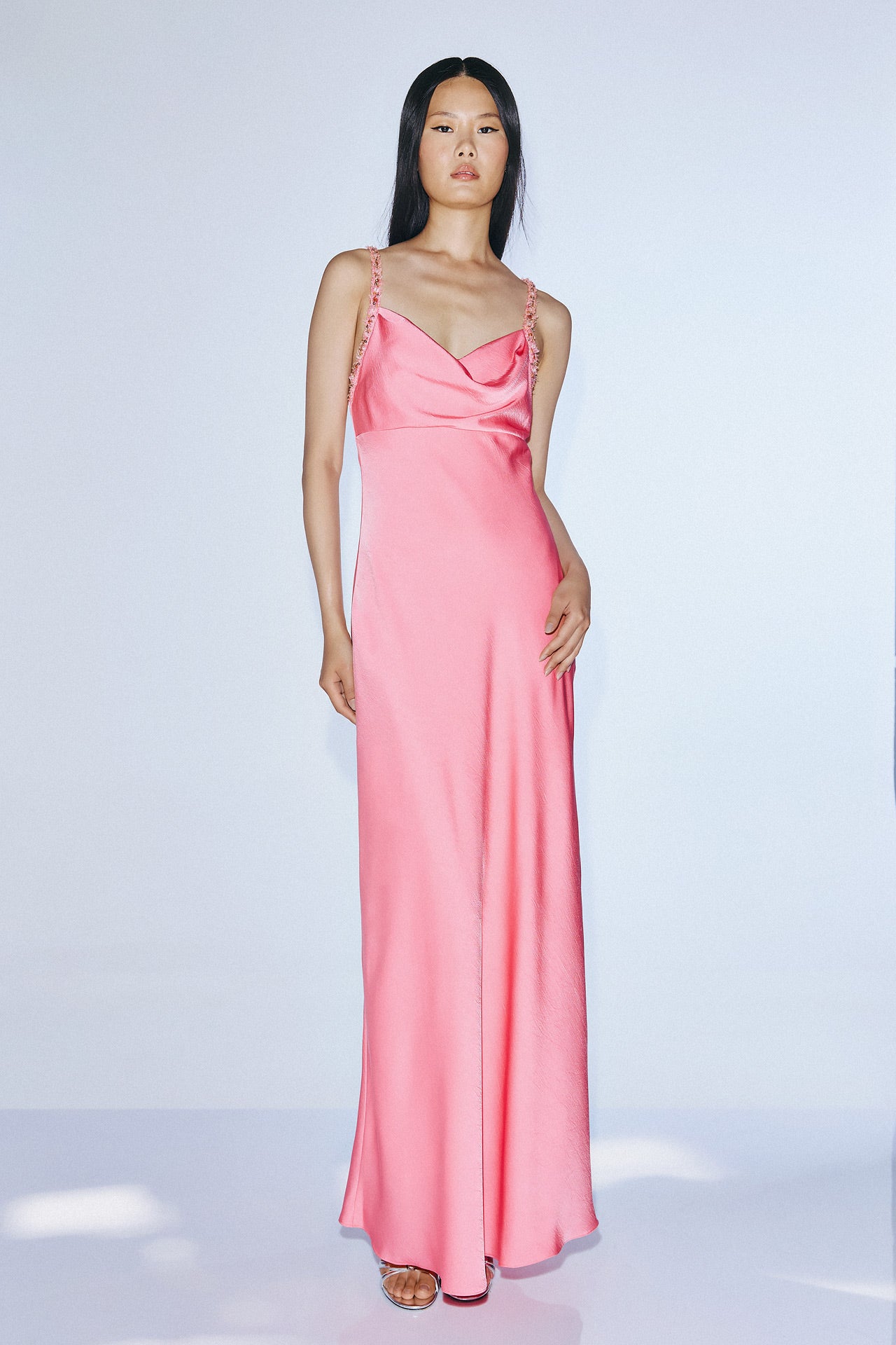 Vestido largo de fiesta confeccionado en tejido satinado.