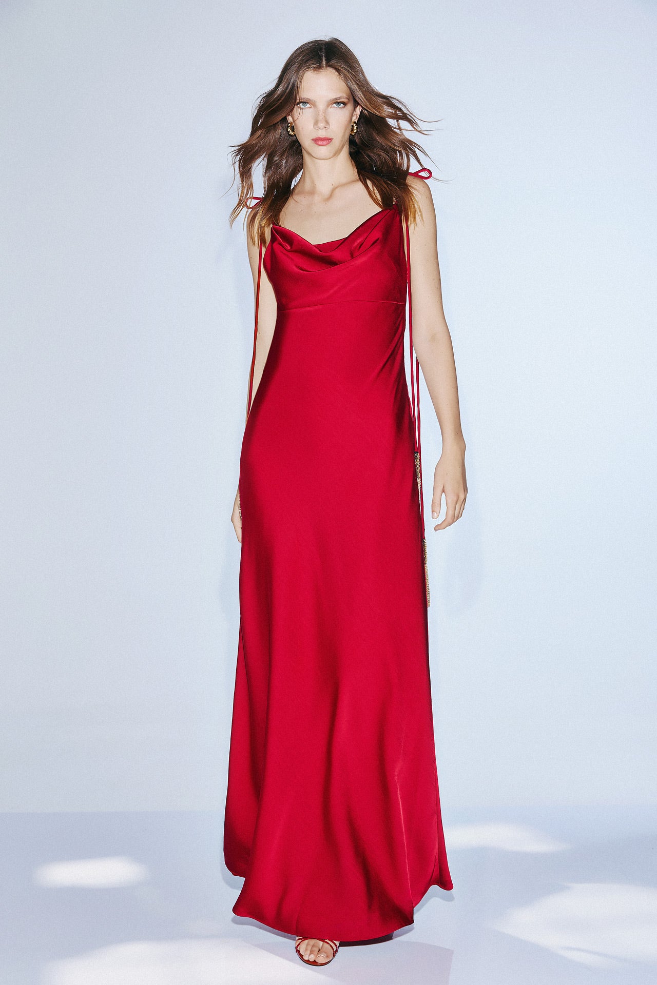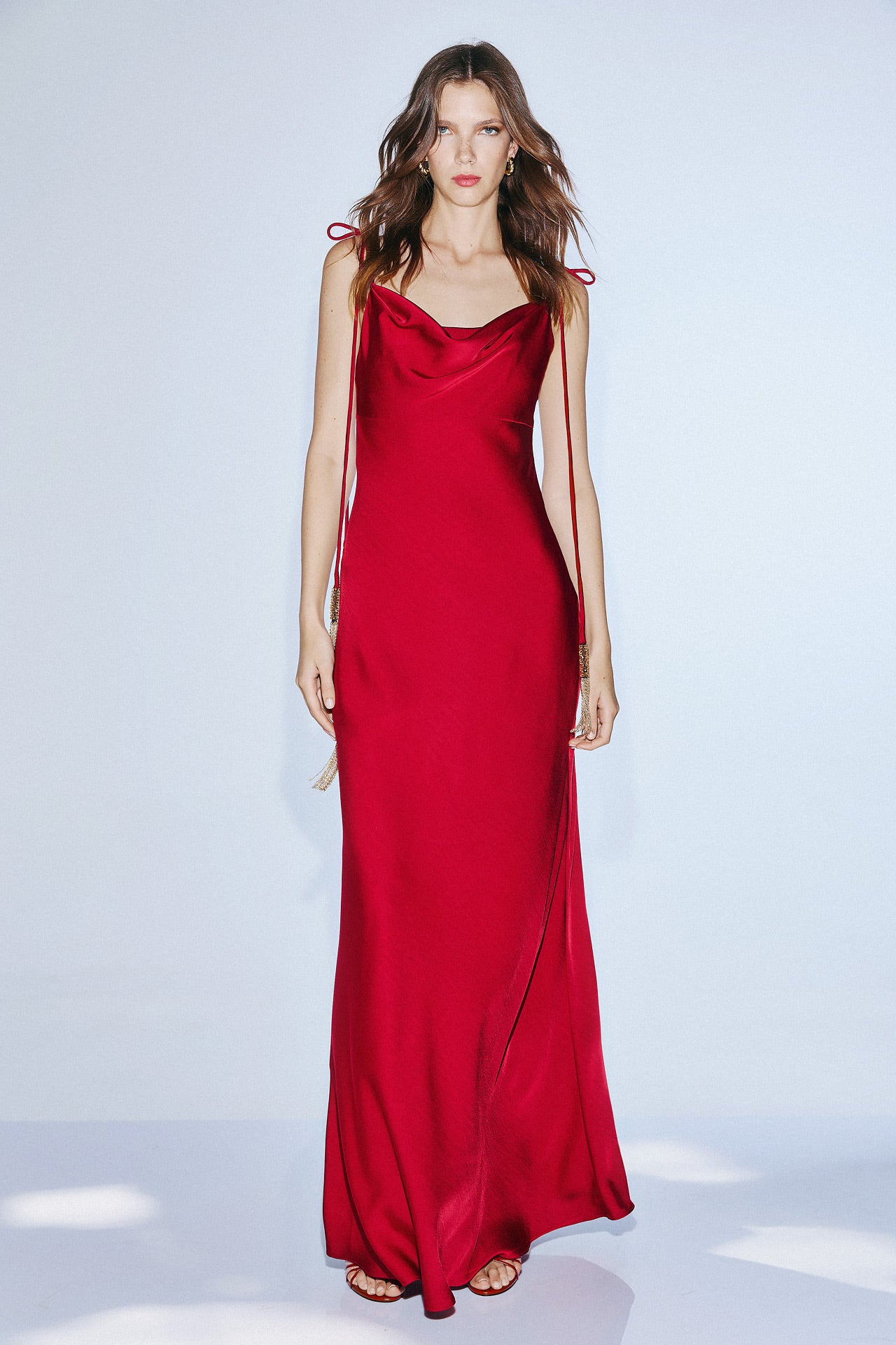 Espalda descubierta y escote fluido.