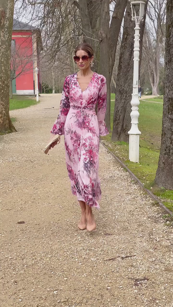 Vestido de fiesta midi y estilo fluido.