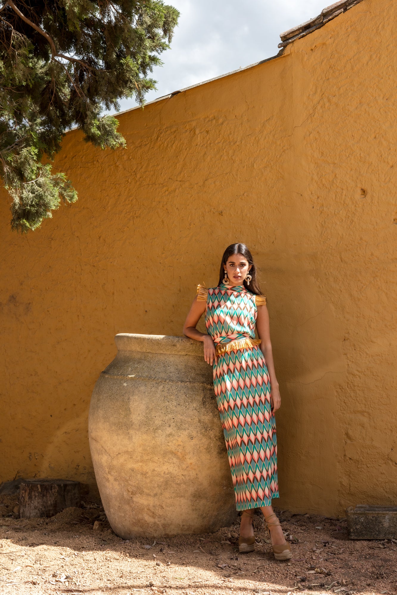 Midi dress made of crepe with an original multicolour zig-zag print.