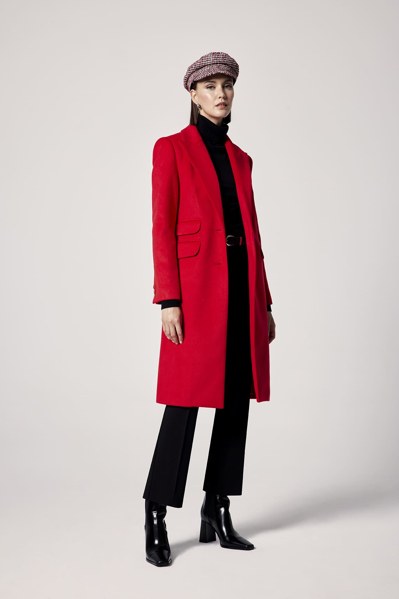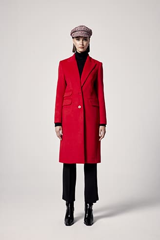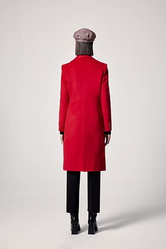 Este abrigo básico en color rojo es una pieza esencial para tu armario. Hecho de materiales de alta calidad, te mantendrá abrigada y elegante en cualquier ocasión.