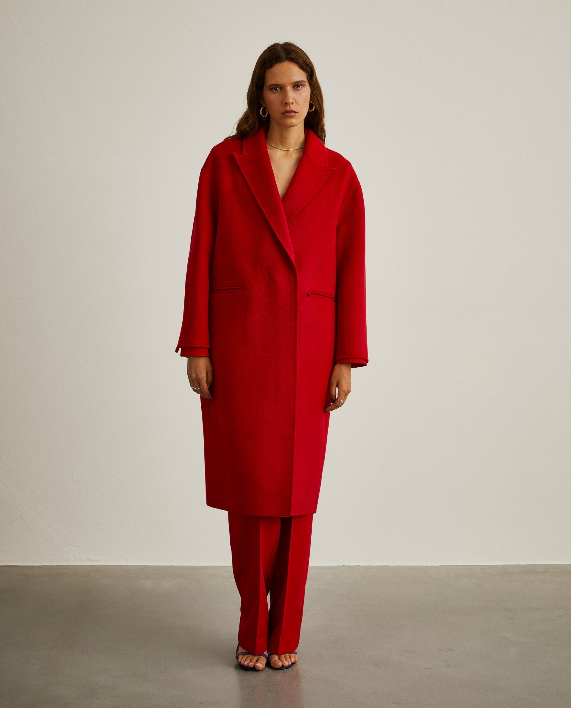Un abrigo largo elegante y sofisticado con cierre de botones, perfecto para destacar en las estaciones más frías. Se cierra por delante con automáticos y tiene bolsillos delanteros con solapa. Los puños están rematados con botones de perlas doradas. Está confeccionado en una mezcla de lana para mantenerte abrigada.