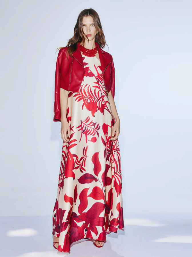 Cazadora tipo biker de piel en color rojo.