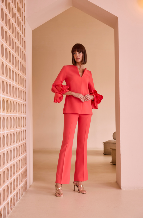 Conjunto de blusón y pantalón en crepe.