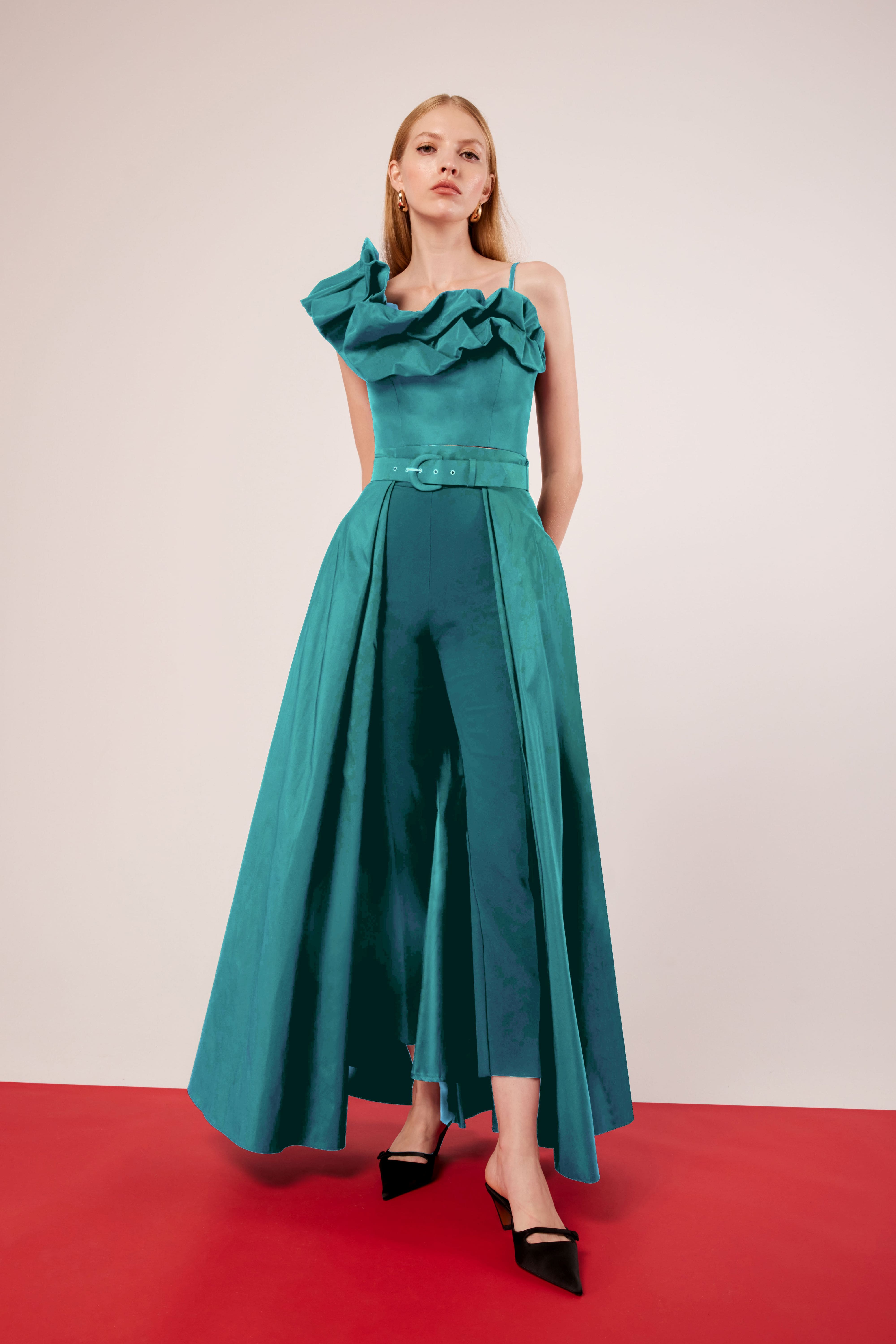Top asimétrico confeccionado en tafetán.