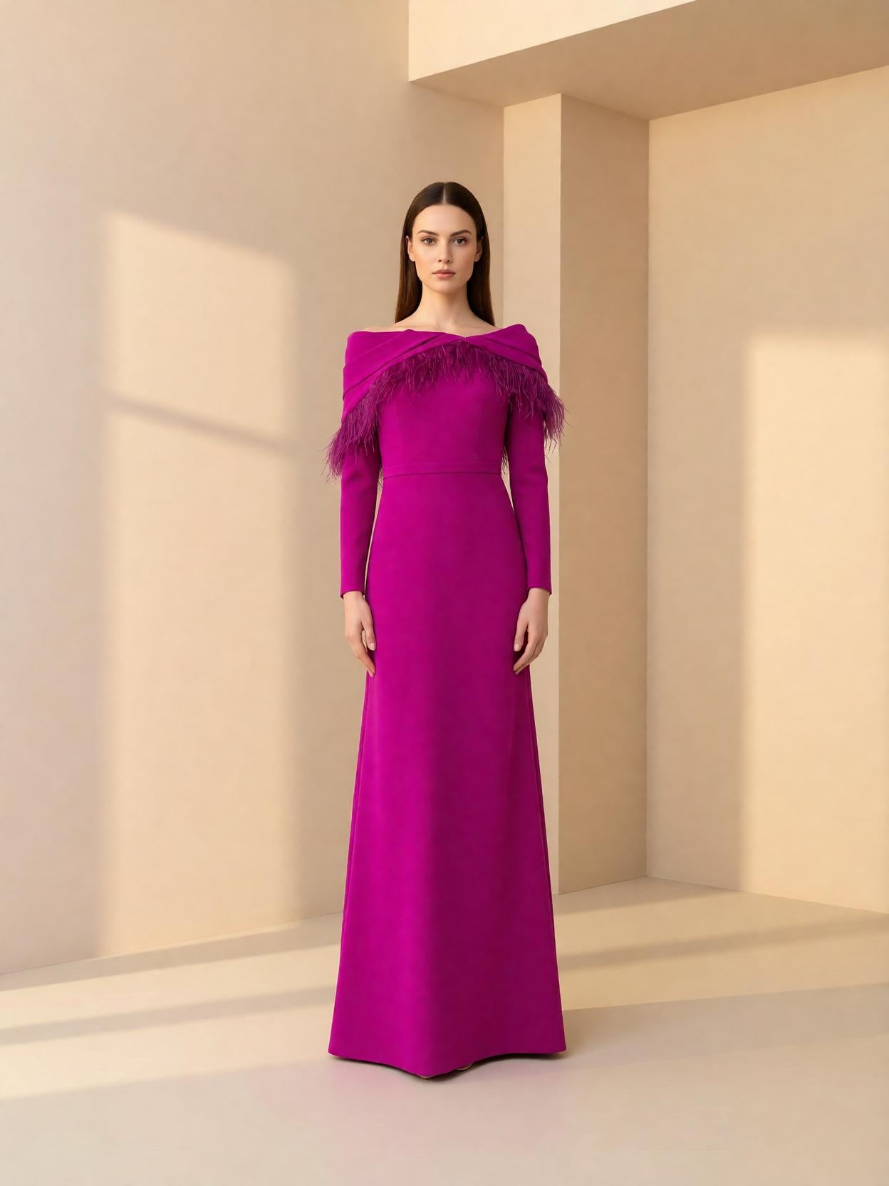 Vestido largo de fiesta confeccionado en crepe.