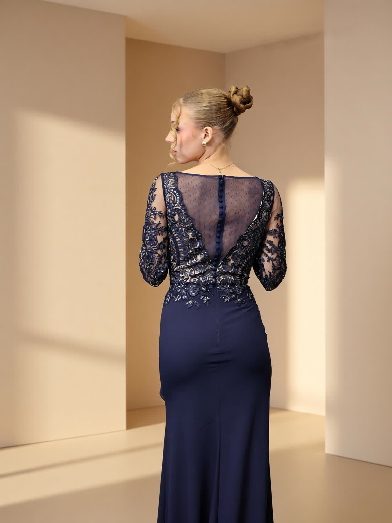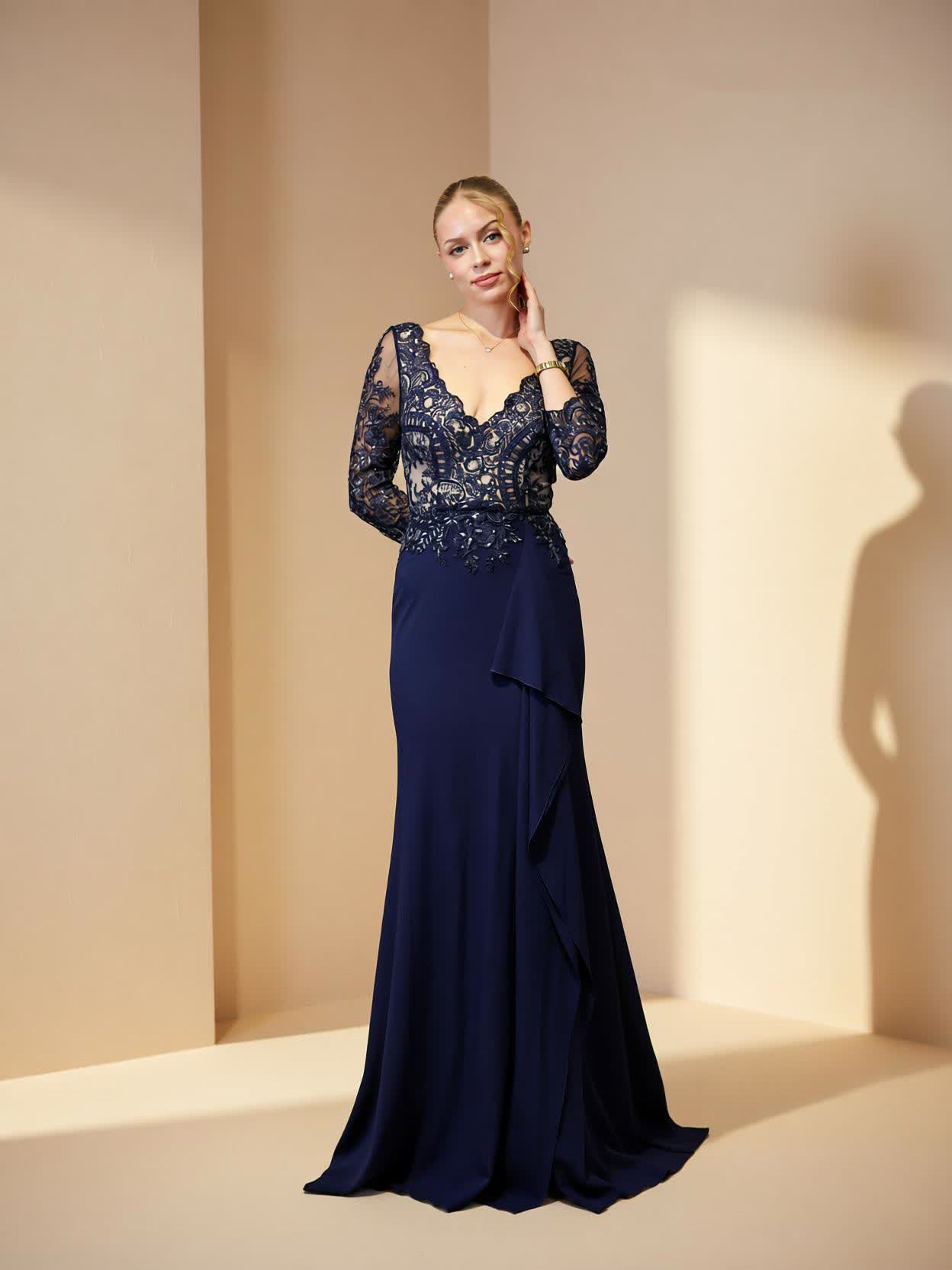 Vestido largode fiesta confeccionado en crepé.