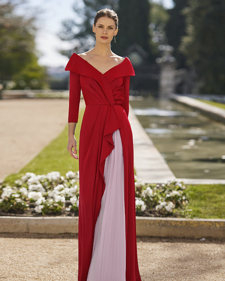 Vestido de cóctel largo y estilo fluido.