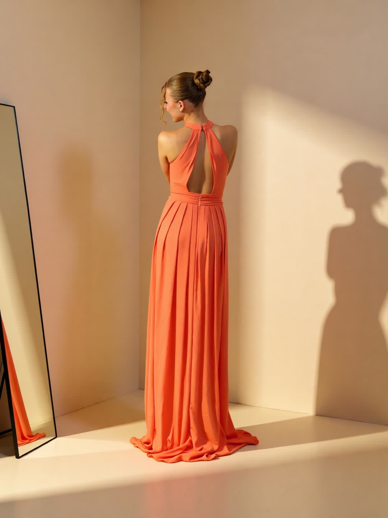 Vestido largo de fiesta confeccionado en crepe.