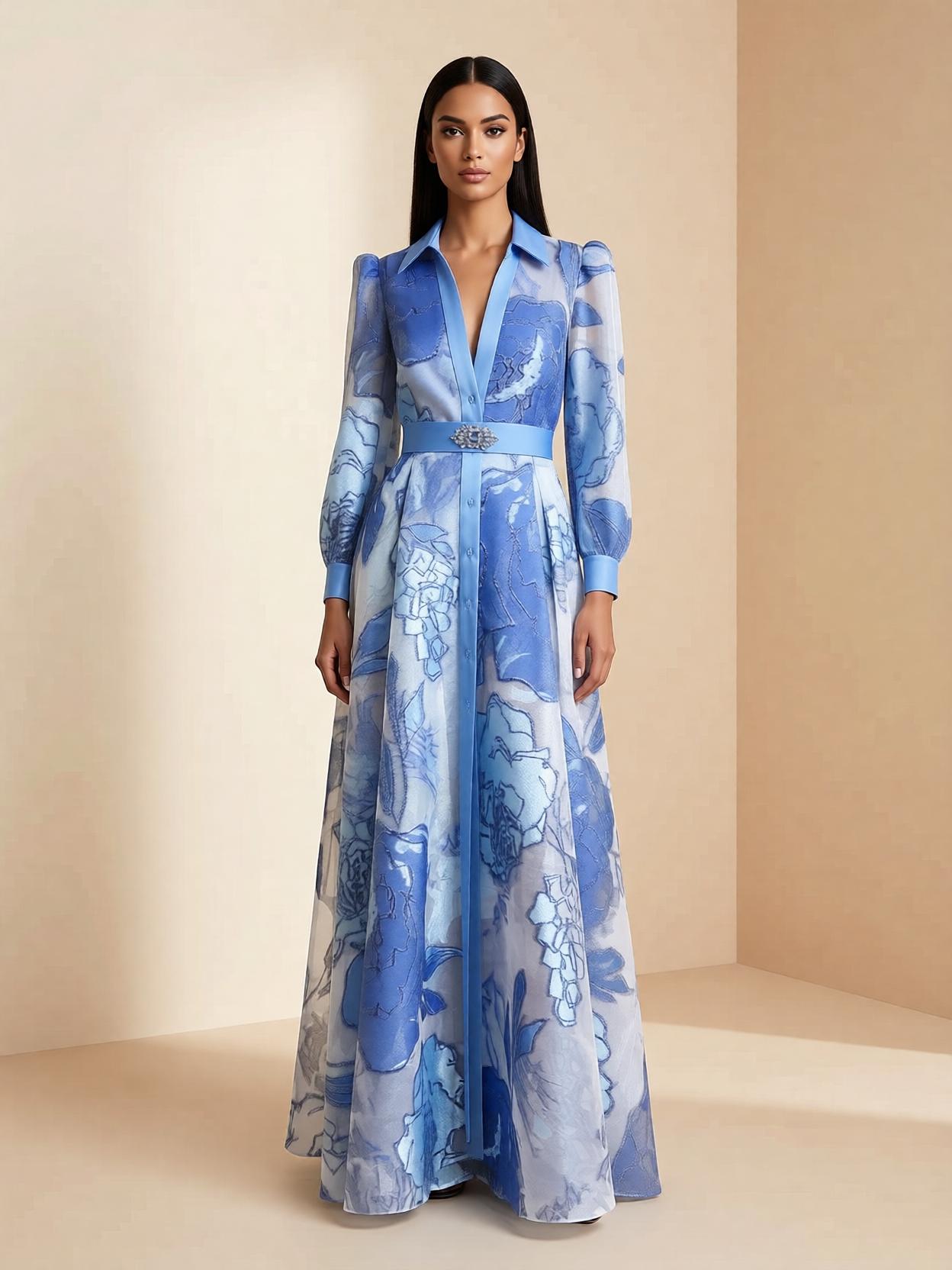 Vestido largo de fiesta de estilo camisero.